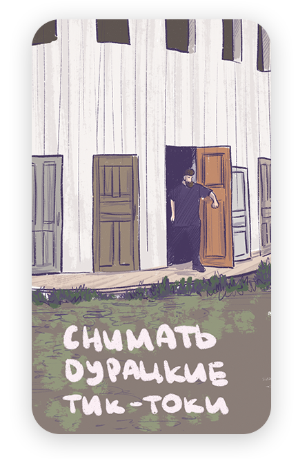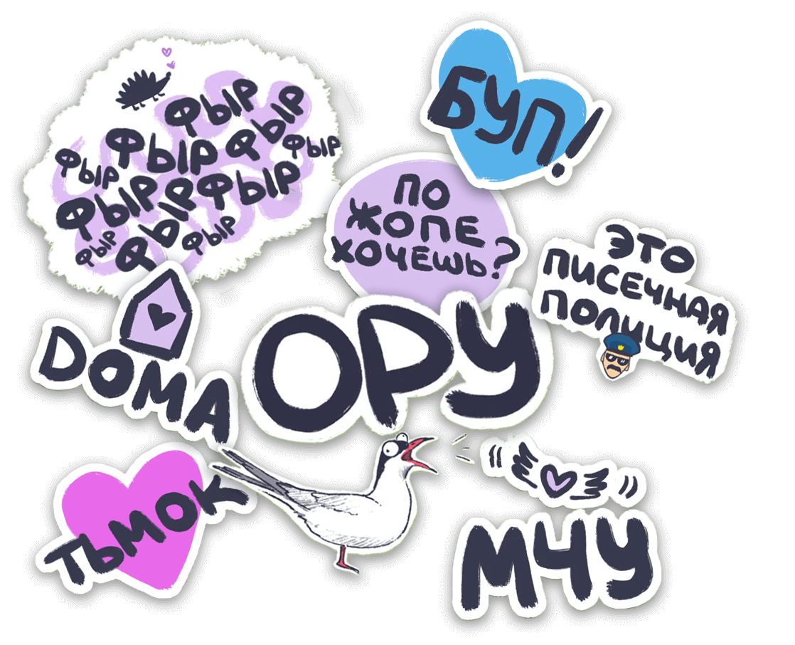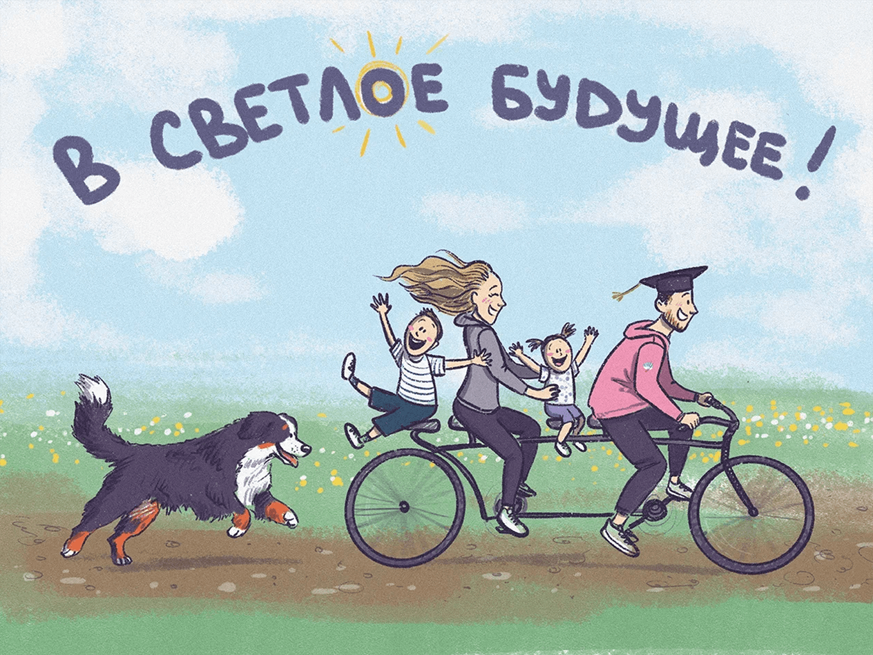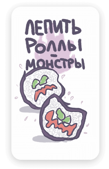 двустороннюю открытку можно наполнить бОльшим количеством иллюстраций, добавить текст, посвятить одной теме и сделать одну большую композицию, состоящую из мемов